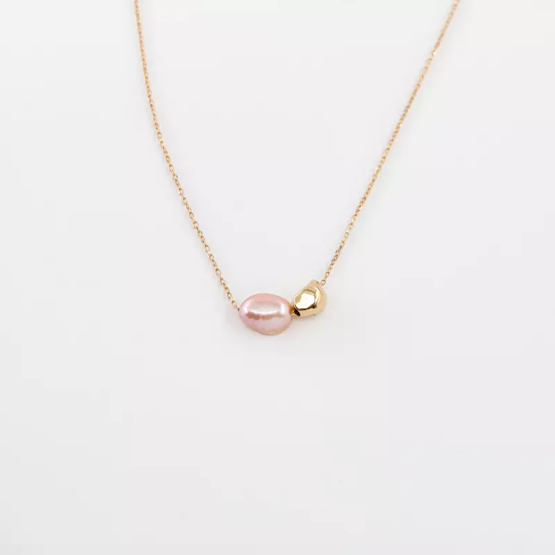 گردنبند مروارید طلایی “لمس عشق” یکی از خاصترین و شیکترین انتخابها برای بانوانی است که به دنبال ترکیب سادگی و ظرافت در استایل خود هستند. این گردنبند با زنجیر ظریف طلای ۱۸ عیار طراحی شده و در مرکز خود، مرواریدی صورتیرنگ و درخشان را در کنار یک قطعه طلای براق جای داده است. هماهنگی بینظیر مروارید طبیعی و طلای زرد، جلوهای لوکس و چشمنواز ایجاد کرده که به راحتی میتواند استایل روزانه یا رسمی شما را کامل کند.